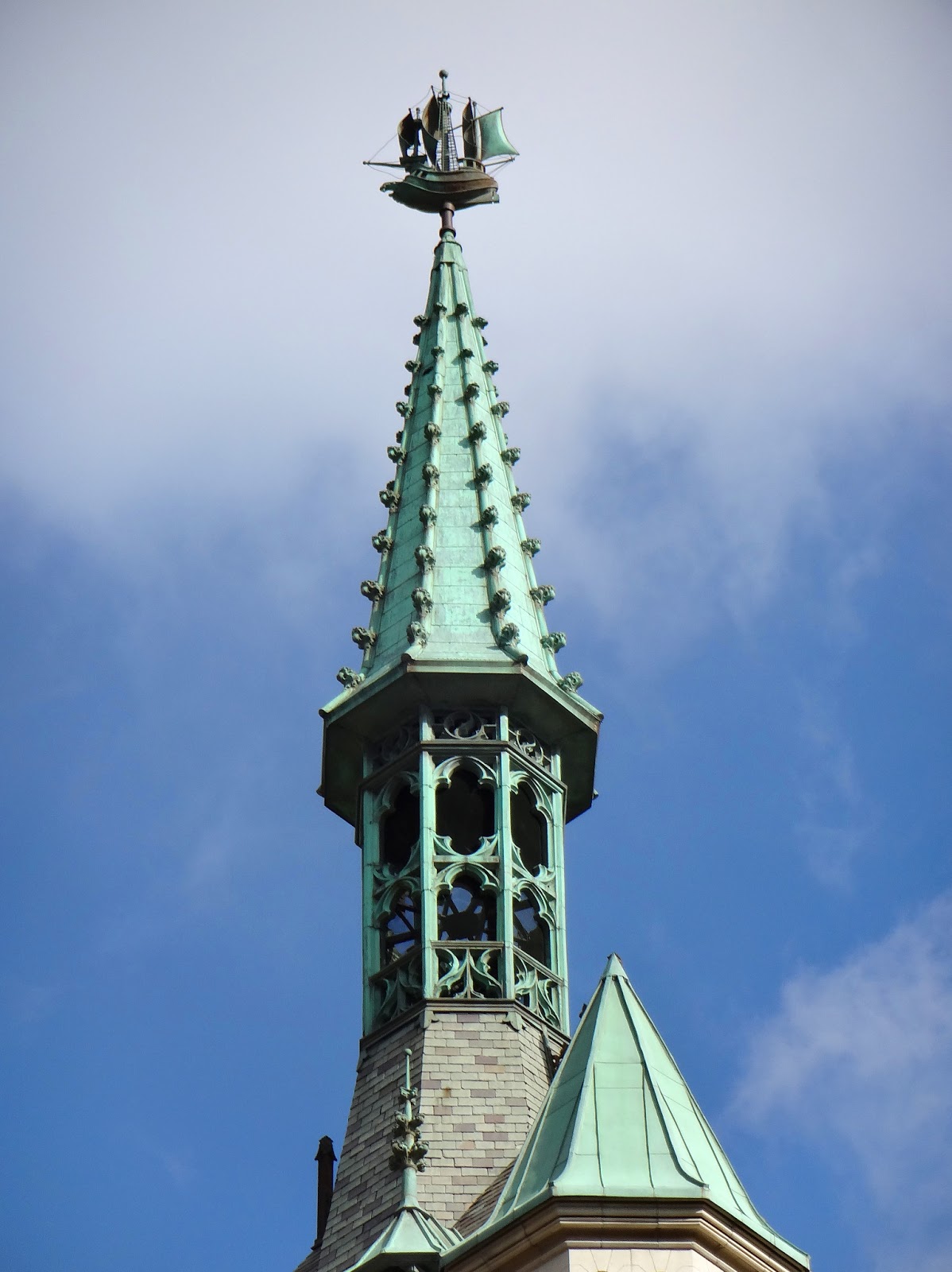 I've lived in Albany for my entire life and spent a good amount of time downtown. So the fantastic weather vane atop SUNY Plaza is a very familiar sight. But I had never seen it actually pivot in the wind. Until yesterday when I looked up and finally saw it move. The large weather vane is, of course, a replica of Henry Hudson's Haelve Maen and was included in the design of the building because local legend says he dropped anchor at almost this exact spot.