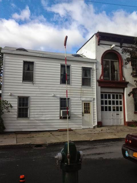 A hot dog impaled above a fire hydrant not far from yesterday's festival.
